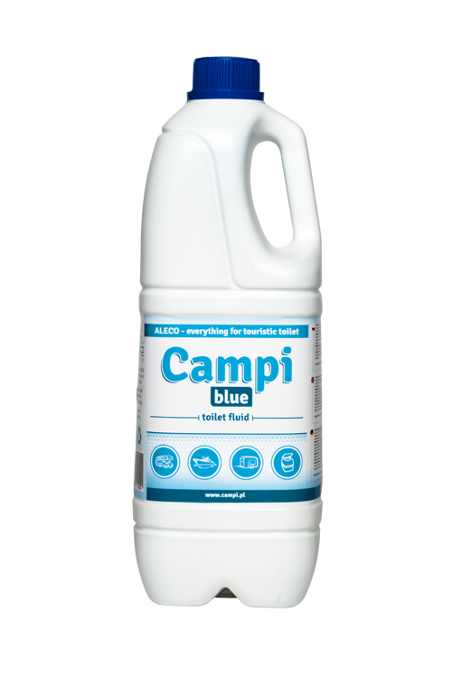 Campi Blue to skoncentrowany płyn, rozkłada zawartość w zbiornikach na fekalia w przenośnych toaletach oraz stałych urządzeniach