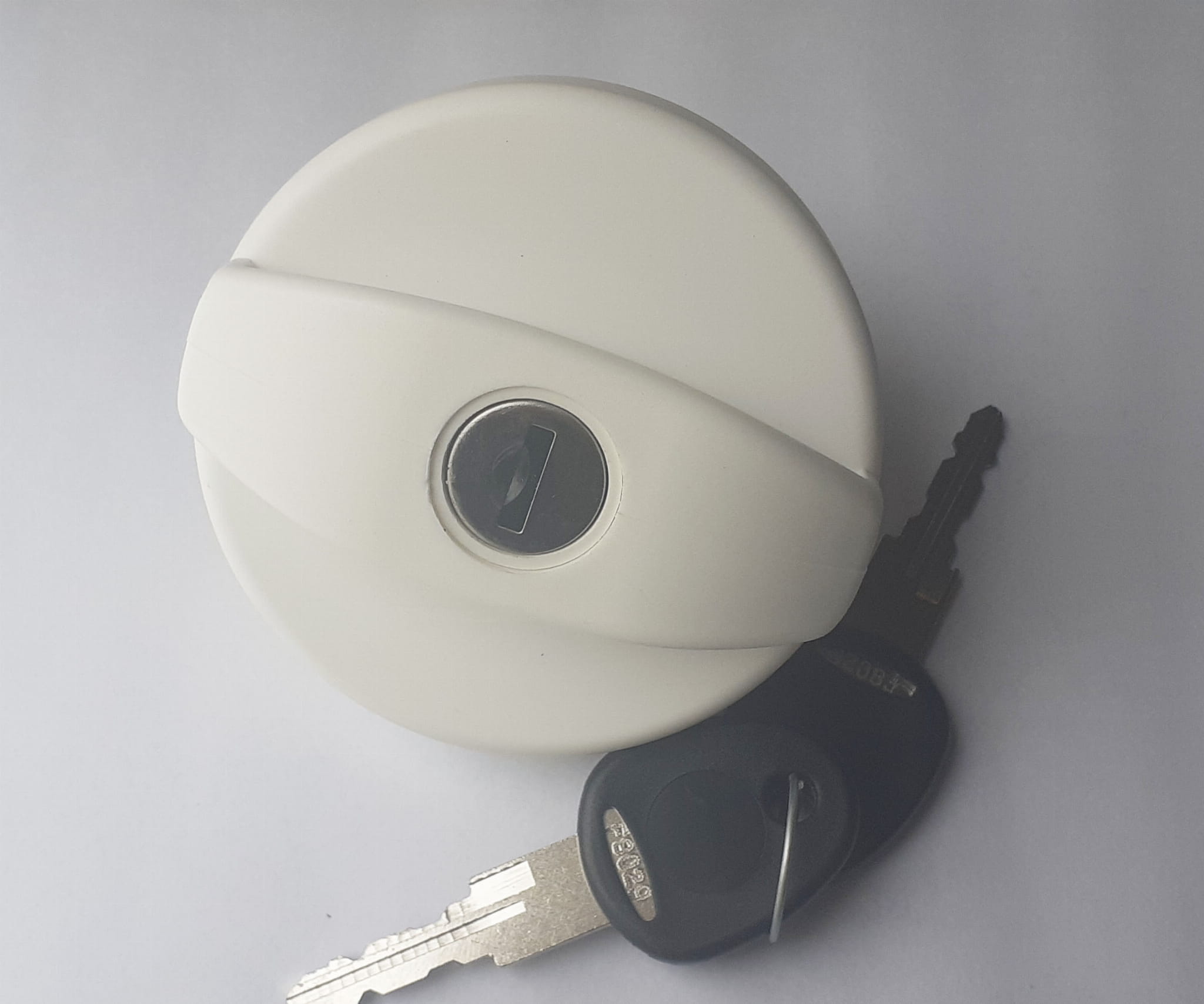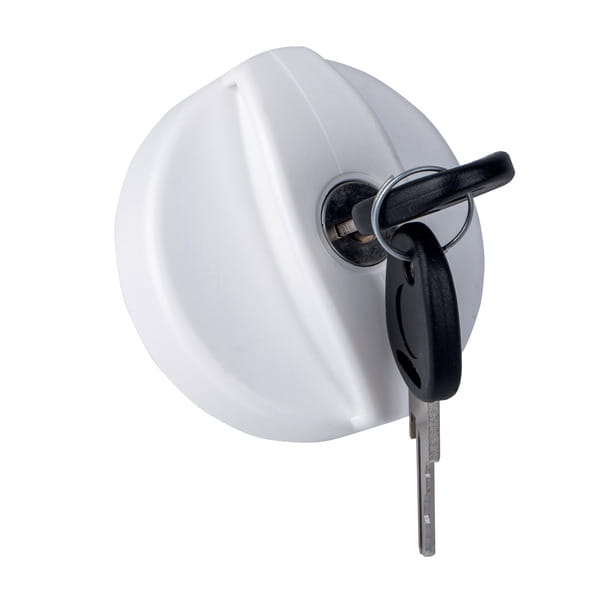 Zamykany na klucz wymienny korek w kolorze białym.