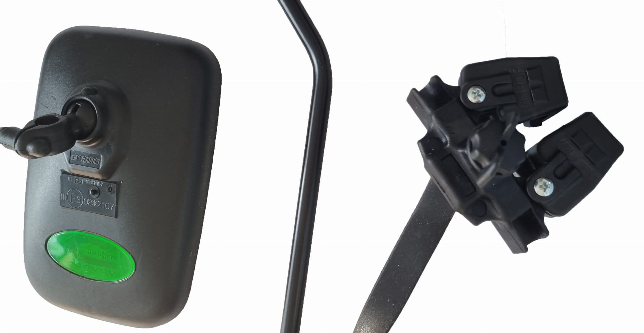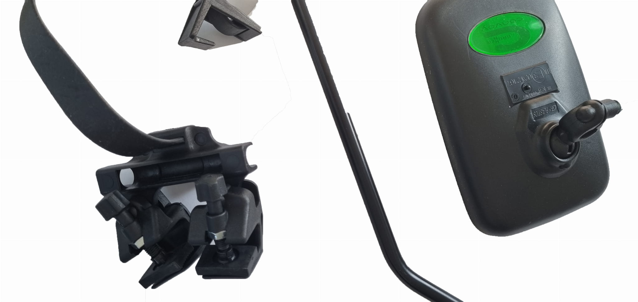 Dodatkowe lusterko wsteczne do uniwersalnego zastosowania. Mocowanie do oryginalnych lusterek odbywa się za pomocą zacisków śrubowych.