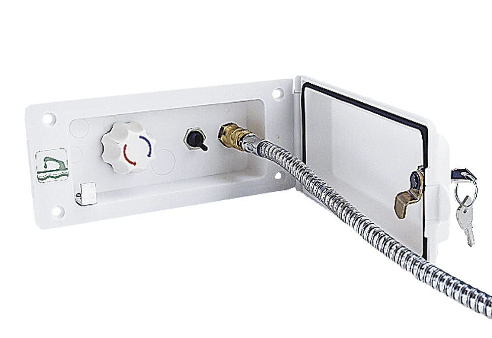 Przłącze dopływu ciepłej wody z mieszaczem wstępnym, złączką wtykową wody i złączką prysznicową. Blokada i wąż nie wchodzą w zakres dostawy, dostępne opcjonalnie.