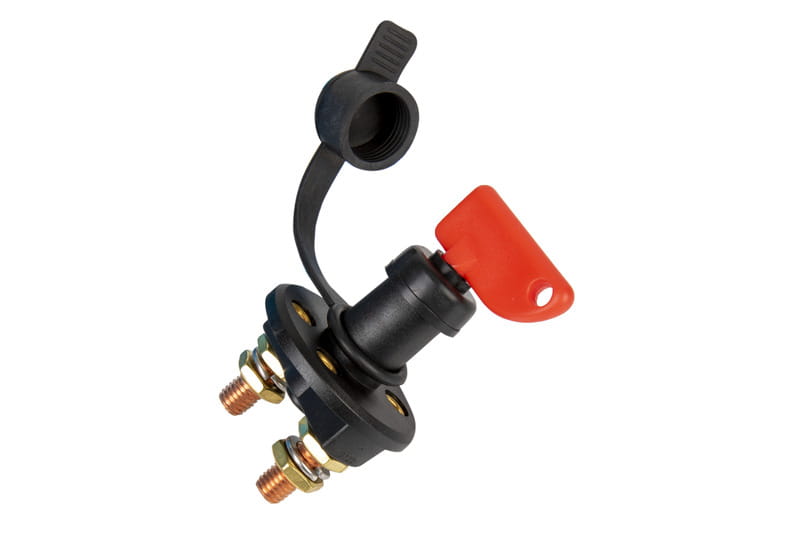 Wyłacznik akumulatora o natężeniu 500 A przez 5 sekund. Z wyjmowanym kluczem Do odłączania dwóch akumulatorów Jako wyłącznik główny i urządzenie zabezpieczające pojazd przed kradzieżą Bardzo przydatny do zapobiegania zwarciom