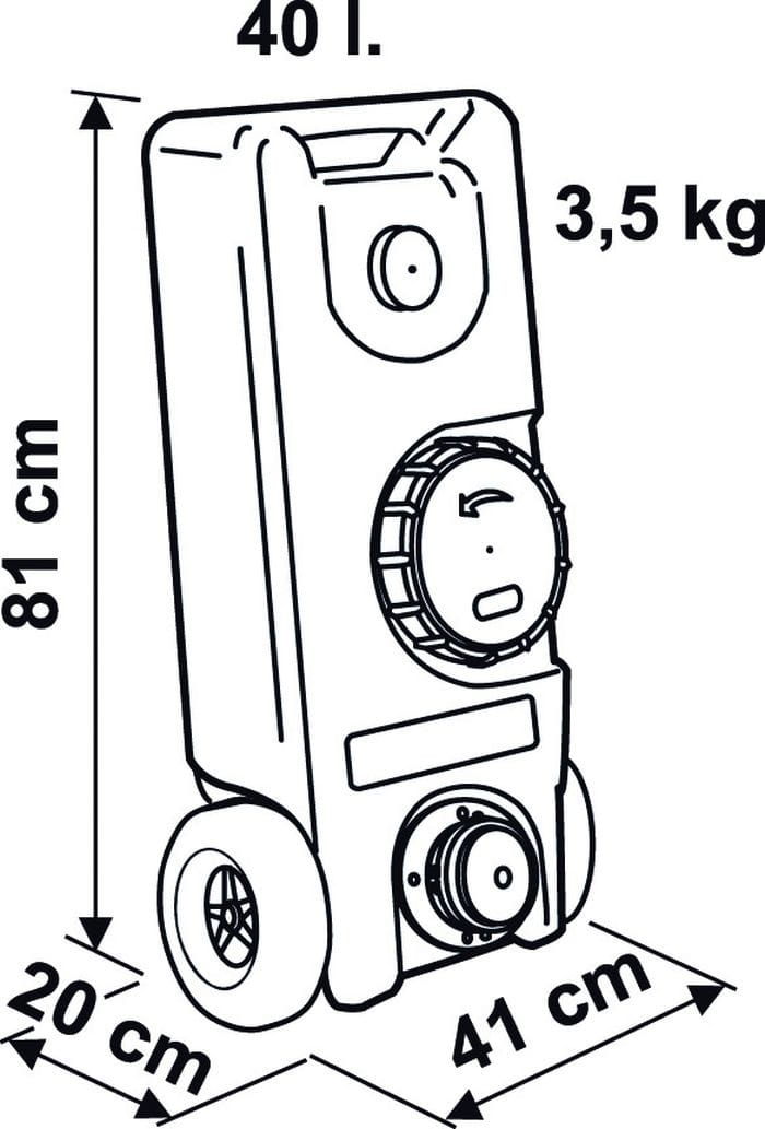 Zbiornik posiada dwa kółka ułatwiające przemieszczanie napełnionego zbiornika