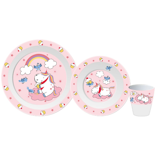 Zastawa stołowa dla dzieci z jednorożcem, składa się z 3 części: